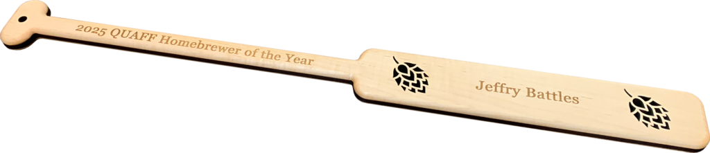 The QUAFF Homebrewer Of The Year is presented with a commemorative mash paddle to celebrate their achievement.
