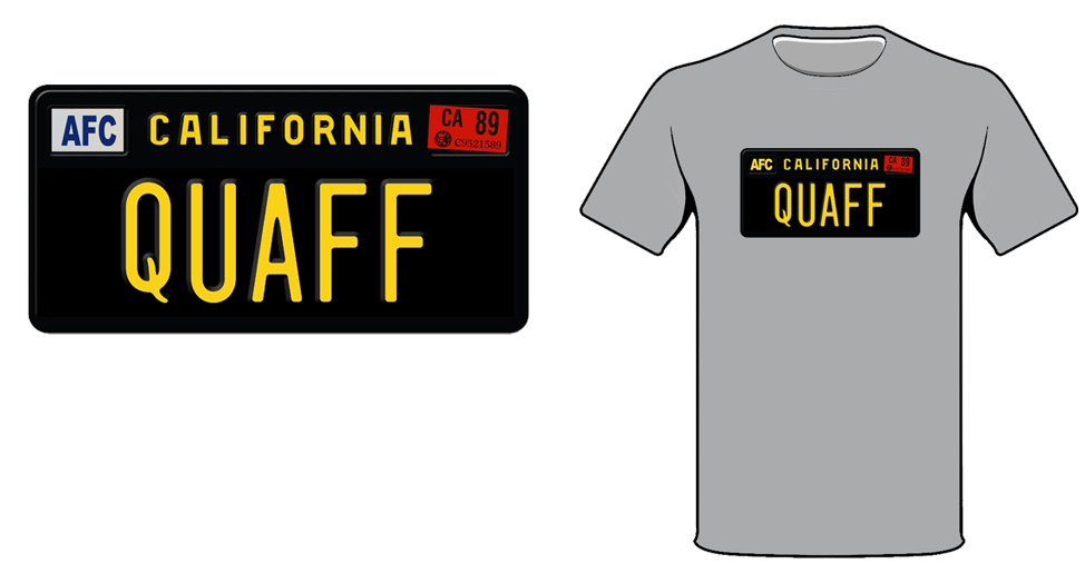 Classic California License Plate “QUAFF”. Dark graphic, works on lighter color shirts.